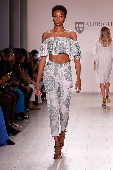 Found in the collections of the 7 recent graduates & 2 current students shown on the Albright runway, was a wide range of collections ranging from “Rose”, a modern, graphic luxe swimwear collection by Josh Polk, to an equally at home by the sea contemporary collection by Jess D’Alessio entitled “Tulú Resort Wear” inspired by the beaches of the Mexican Resort town of Tulum, & even a resort collection that would prove more at home on the streets than on the beach, “Whispering Wings”, by recent graduate Luisana Batista.