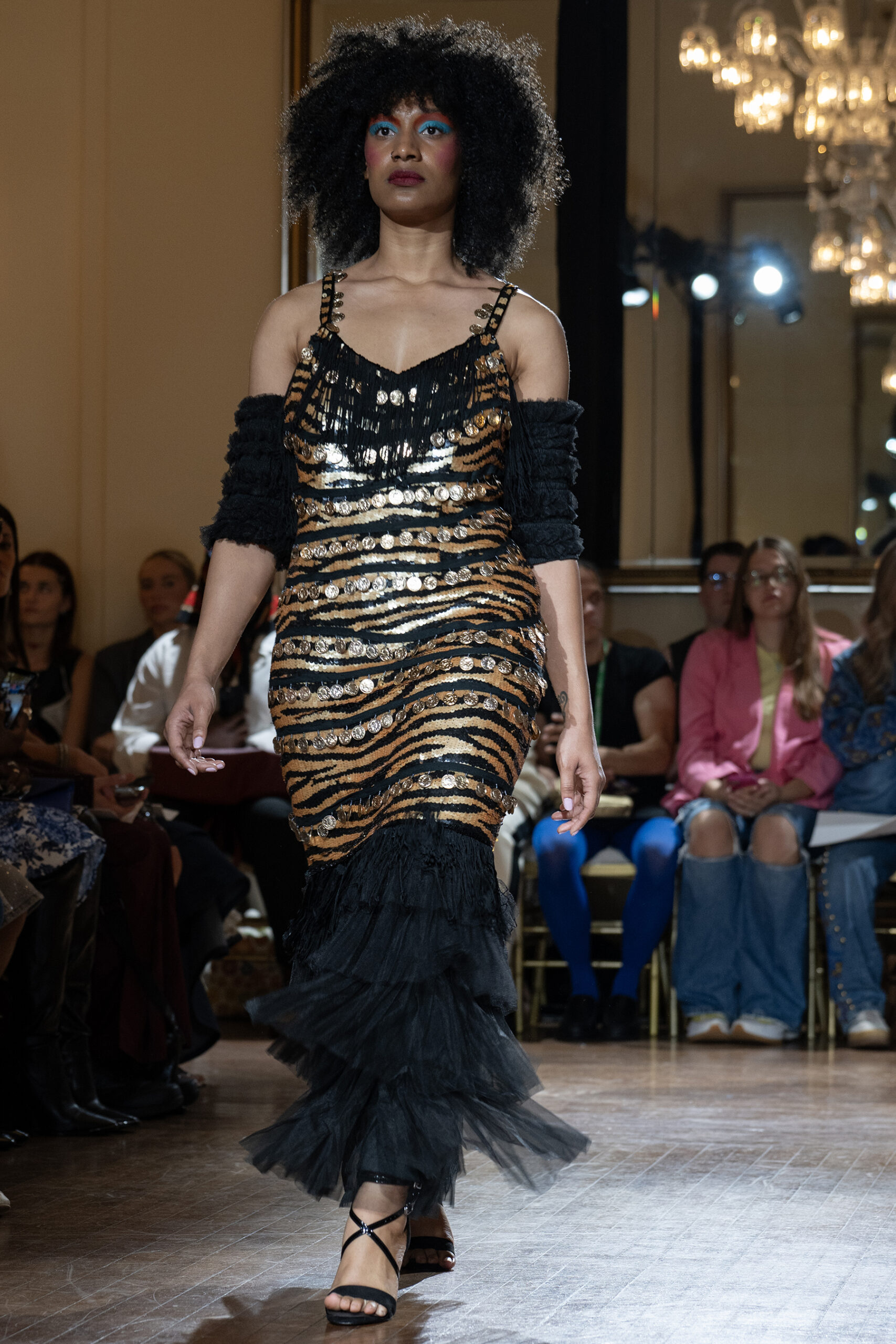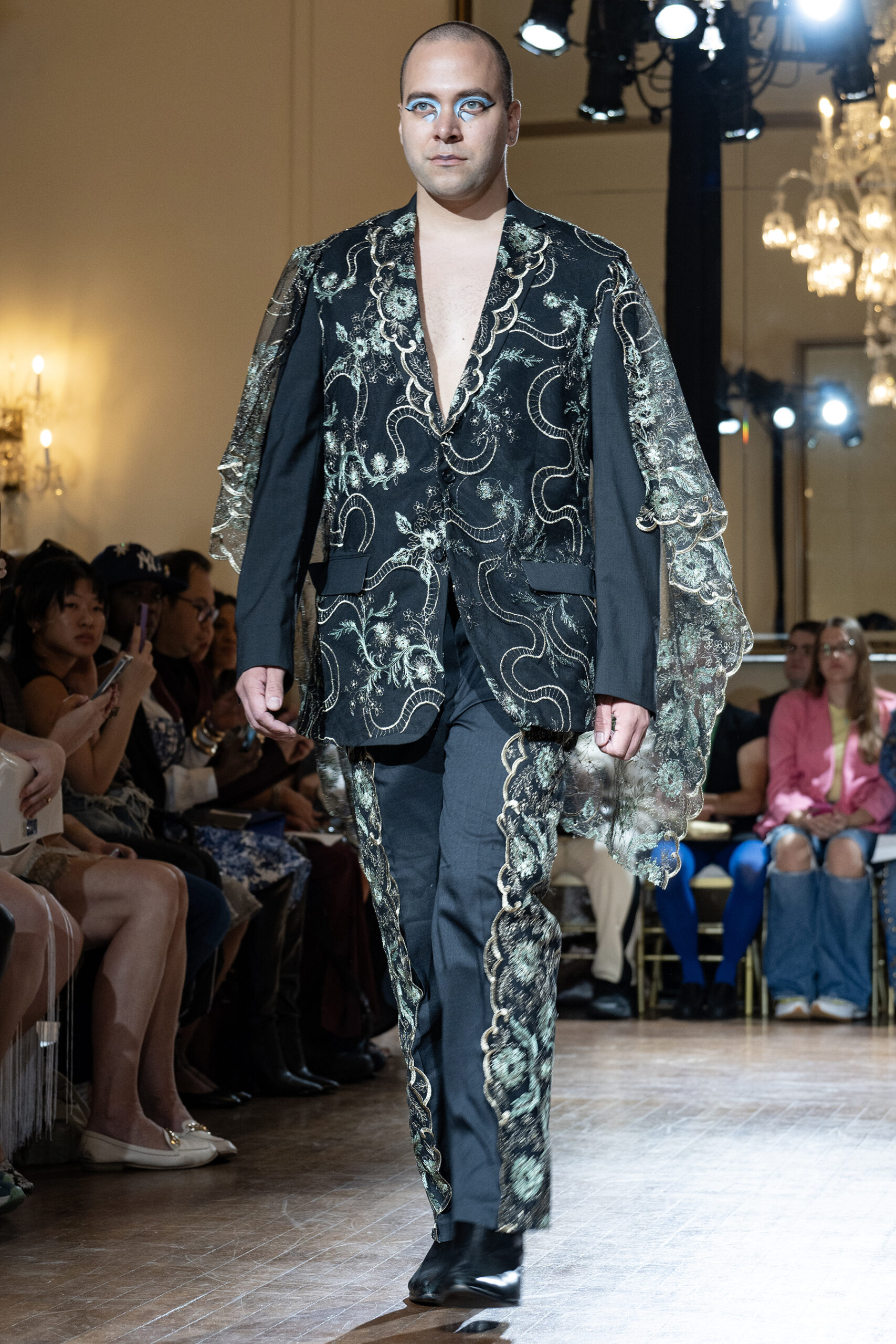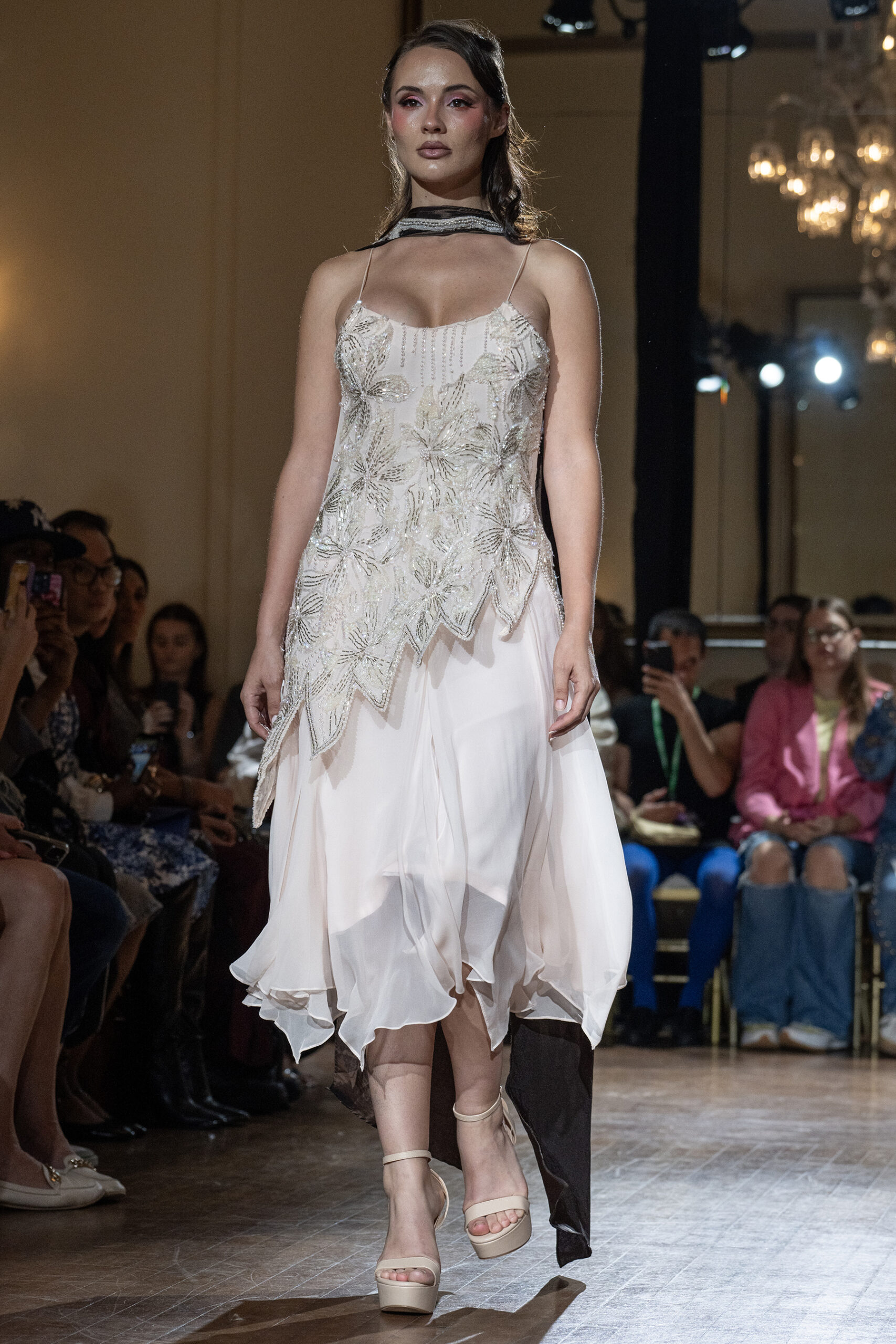 Said Evan, when asked about his inspiration for his latest show, “My inspiration was what I call Found Opulence: Thrifted Beginnings, Couture Endings. These garments were once overlooked, but with care and imagination, they became extraordinary. At its heart, this collection is about honoring the planet, the wearer, and the stories stitched into every thread.”