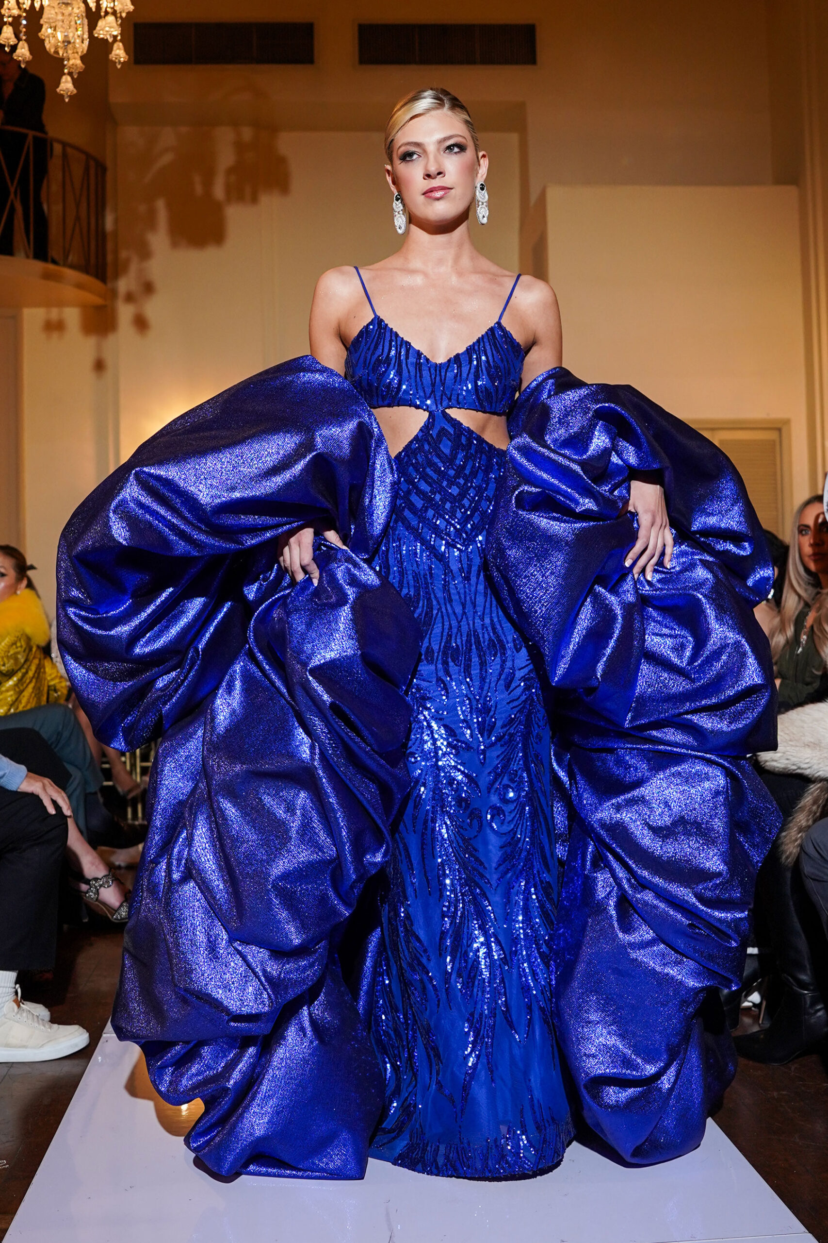 While the clothes shown were not the typical fare New Yorkers typically embrace, Diana Mahrach is a designer who has successfully identified her niche & creates clothing that appeals to them, ensuring their ongoing loyalty. Vivid color is a part of the brand’s DNA. Diana consistently incorporates the vivid colors found in her native Morocco into her eveningwear & special occasion designs.