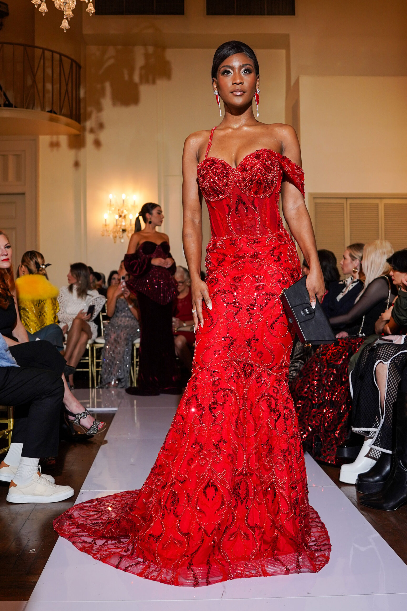 This show was more of a happening as opposed to just another runway show. The elegant 3 West Club hosted the event that included a celebrity emcee, Five-time Emmy Award-winning journalist Kristen Thornem. The journalist is the host of the true crime series, MISSING. As emcee, she kept the enthusiastic attendees whooping & clapping from start to finish.