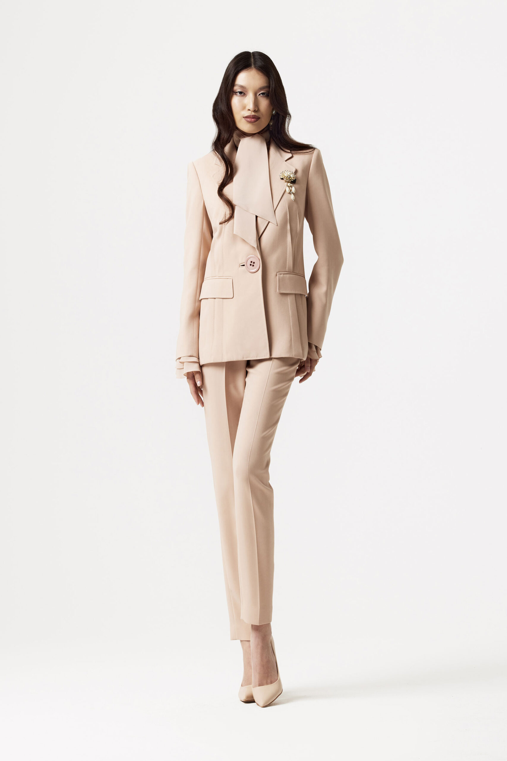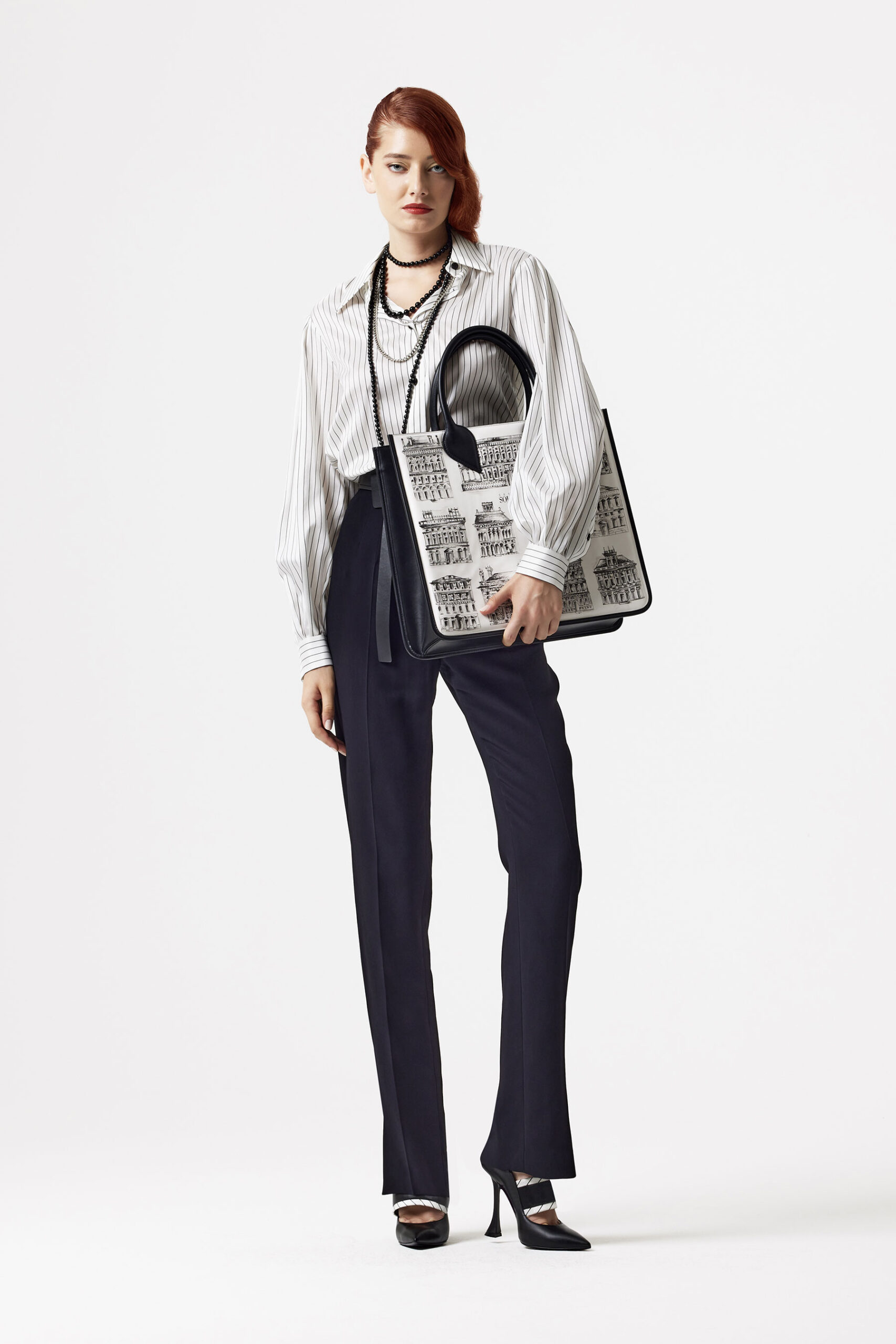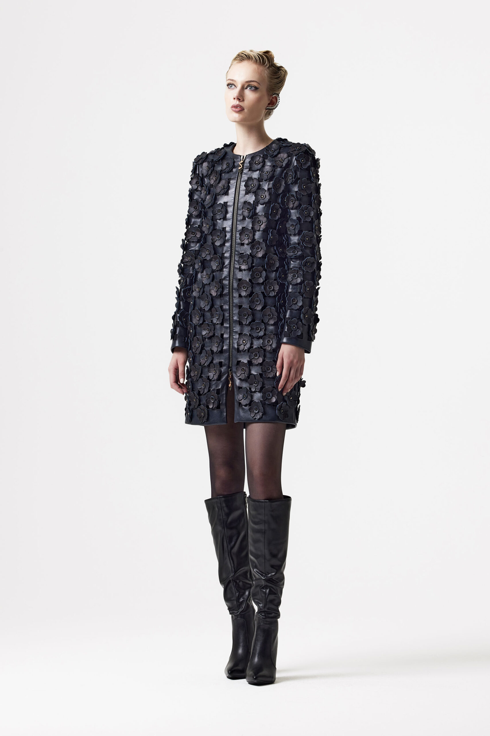 The collection’s four thematic chapters — from the sculptural restraint of The Architecture of Black to the poetic revivalism of The Time of Sinopia — were cohesive without being predictable. A leather anemone motif emerged as a quiet signature, symbolizing rebirth. Architectural tailoring, geometric precision, and noble materials anchored the collection firmly in Italian craftsmanship, yet the attitude was unmistakably contemporary: urban, fluid, self-possessed.