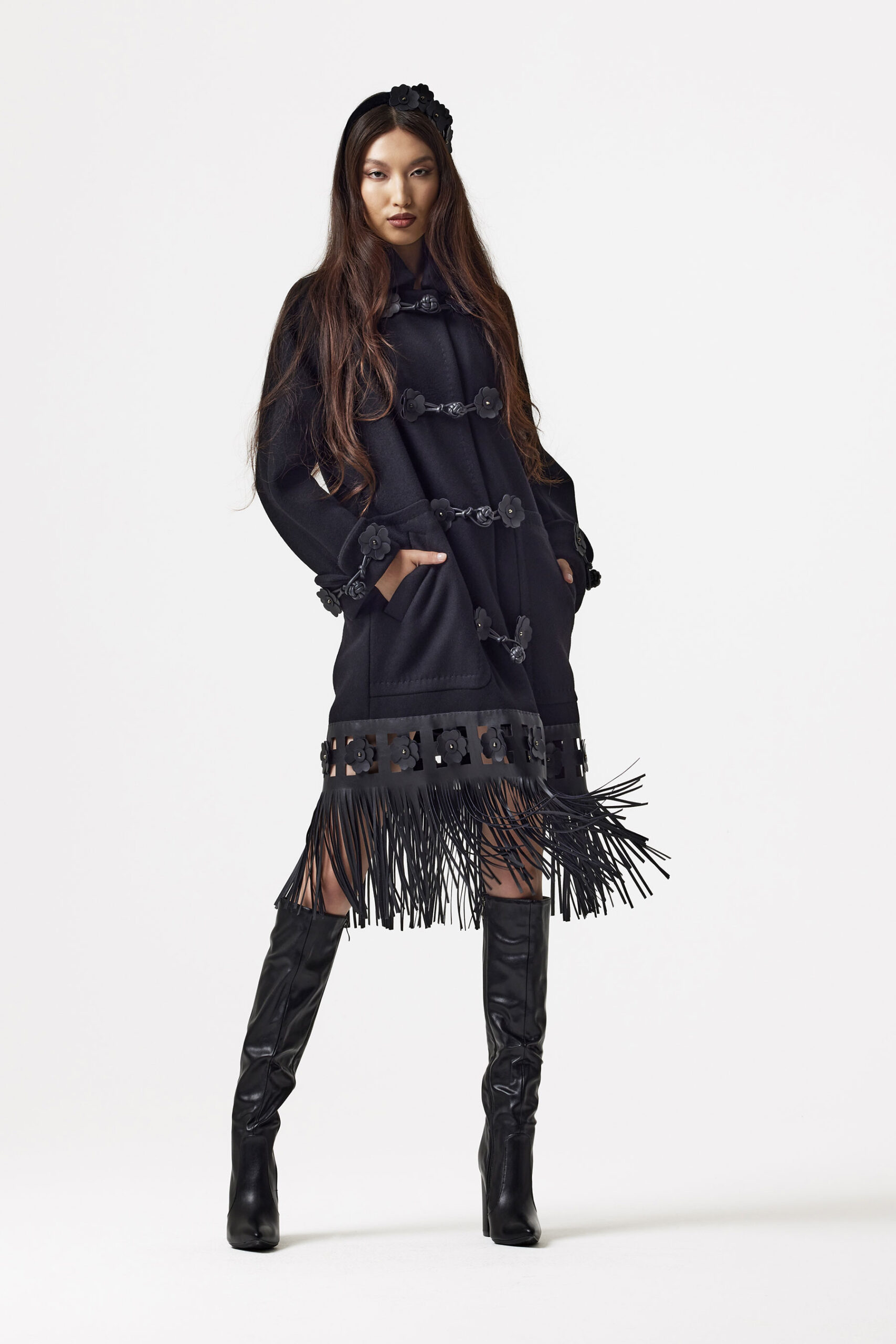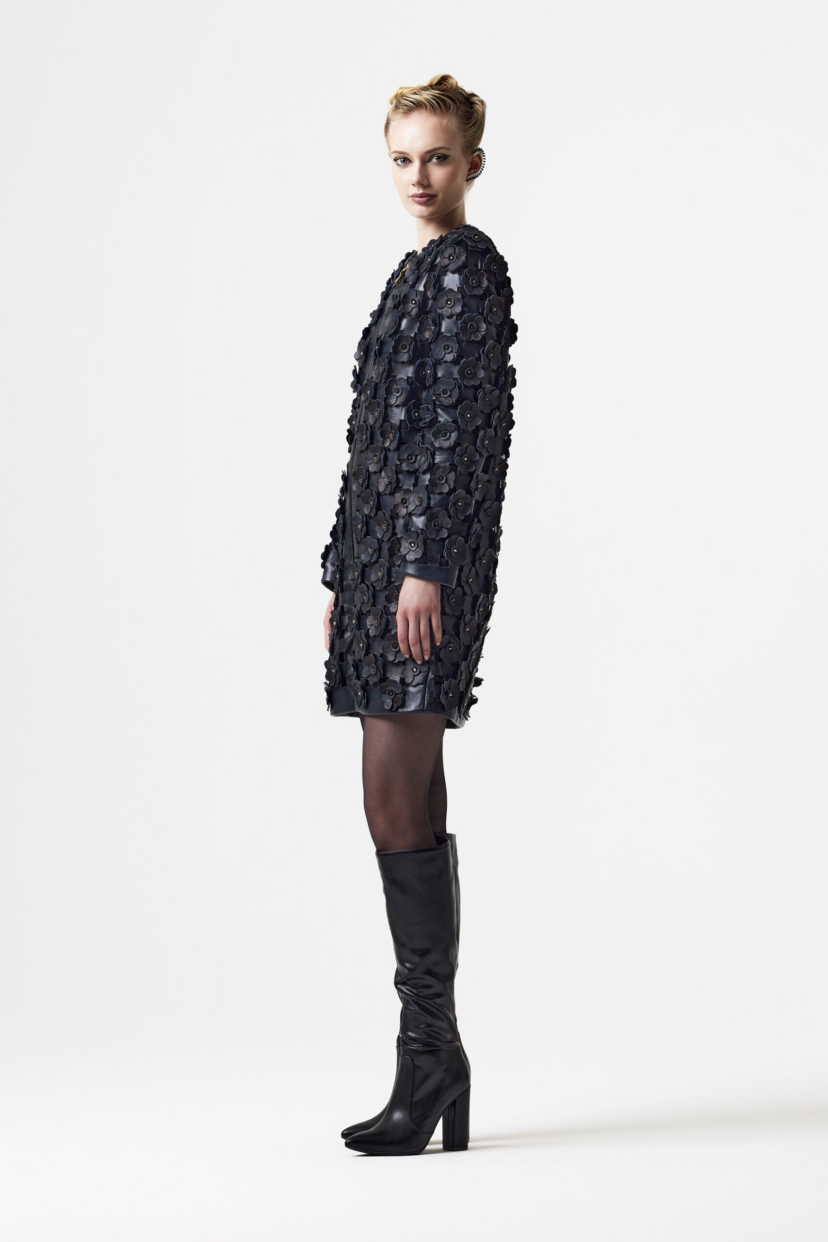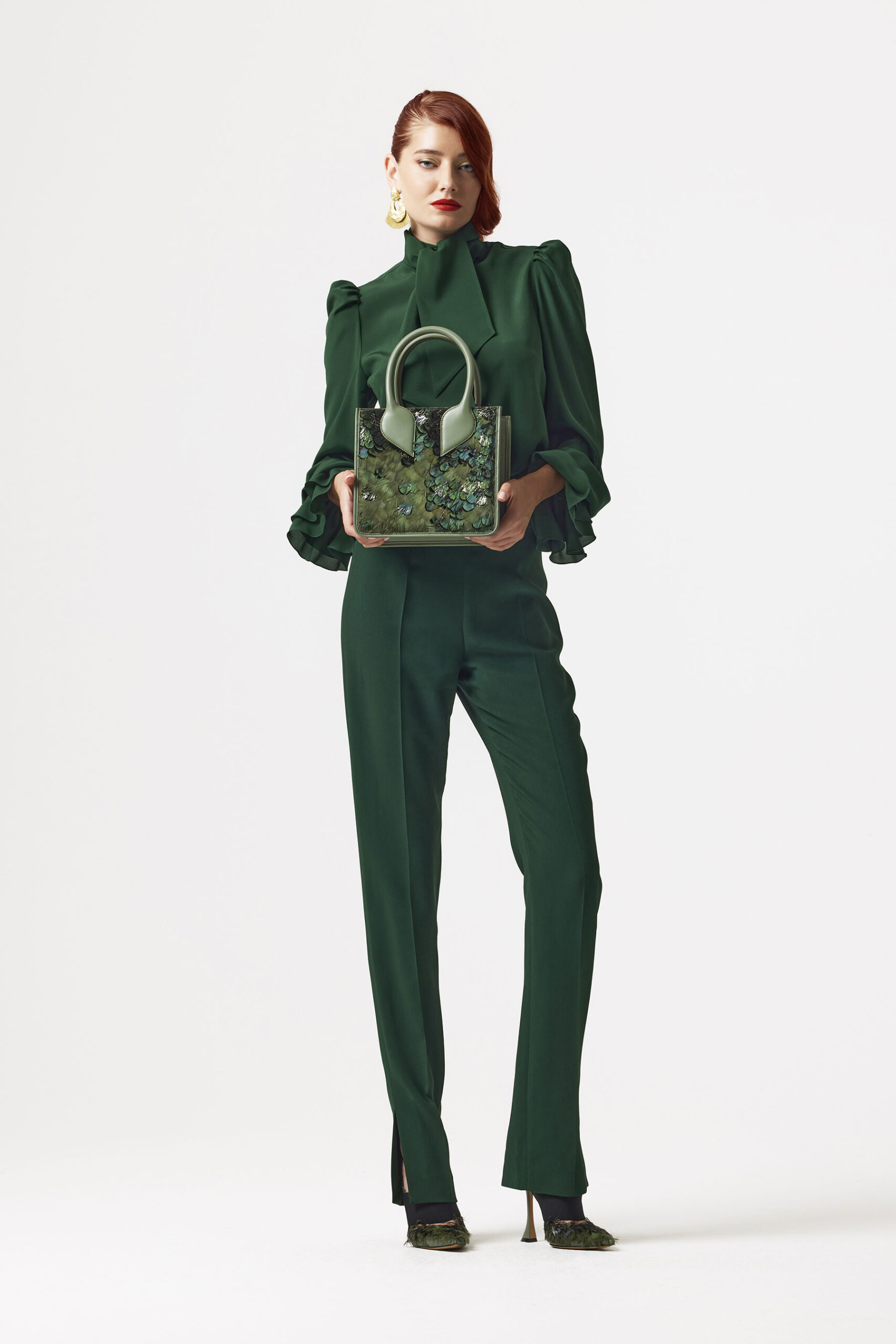 The collection’s four thematic chapters — from the sculptural restraint of The Architecture of Black to the poetic revivalism of The Time of Sinopia — were cohesive without being predictable. A leather anemone motif emerged as a quiet signature, symbolizing rebirth. Architectural tailoring, geometric precision, and noble materials anchored the collection firmly in Italian craftsmanship, yet the attitude was unmistakably contemporary: urban, fluid, self-possessed.