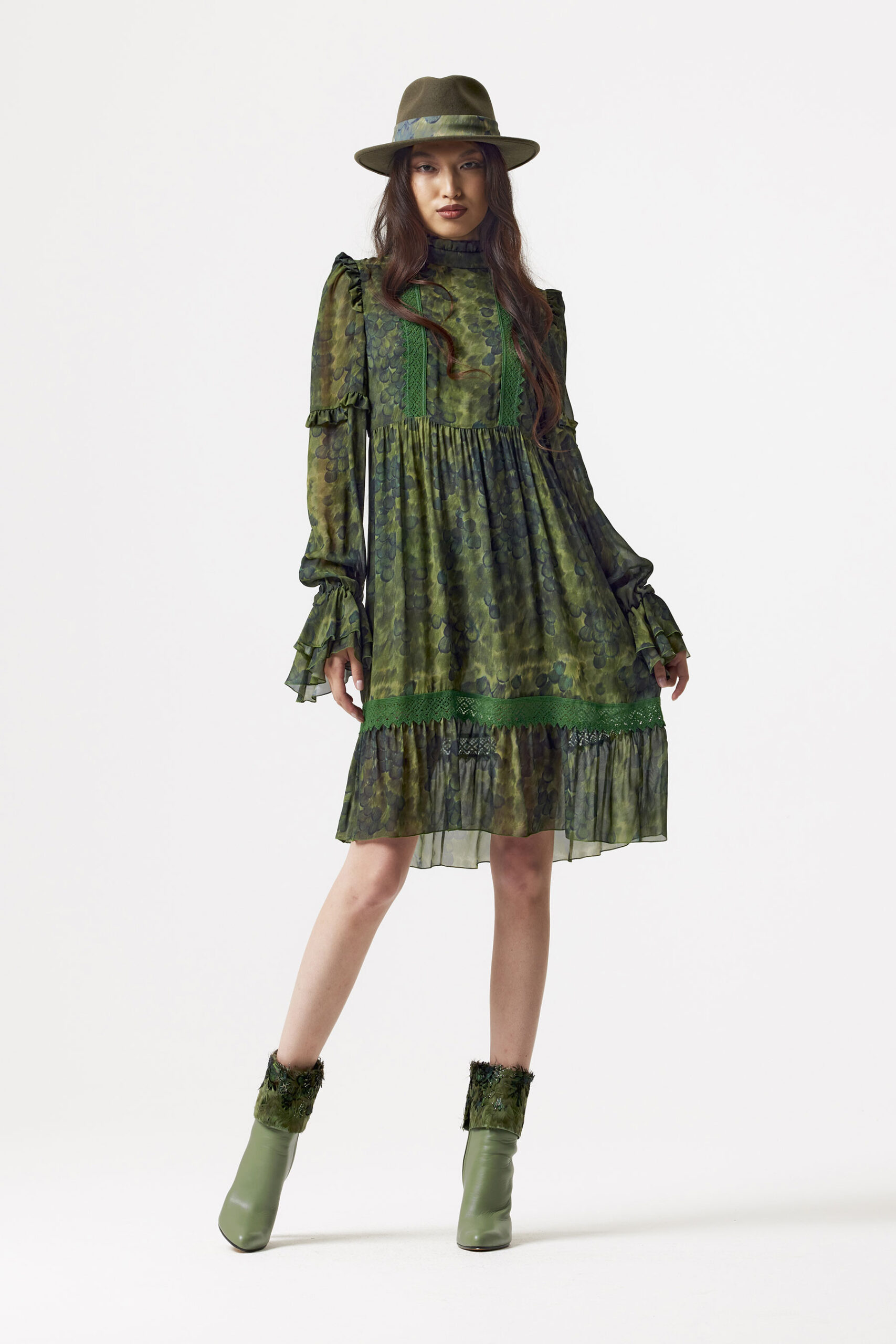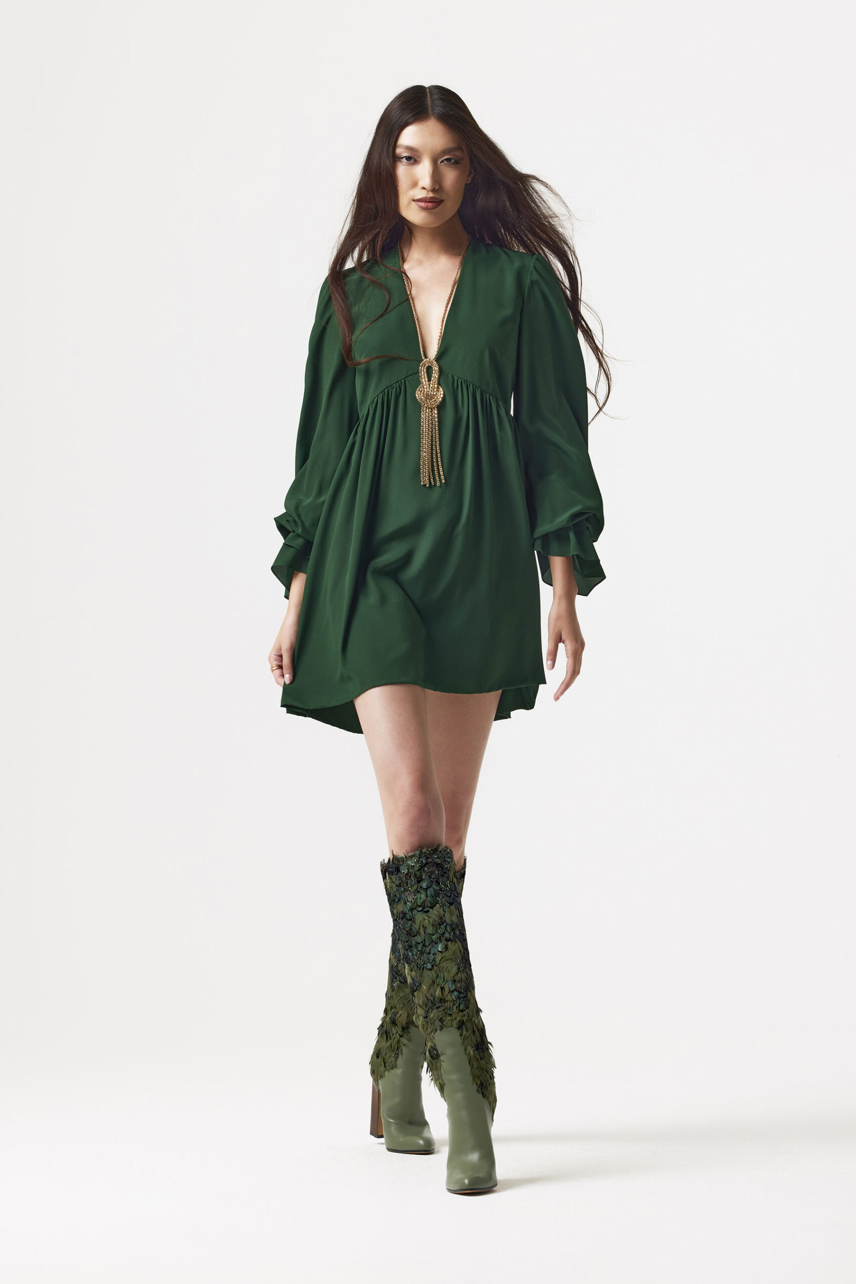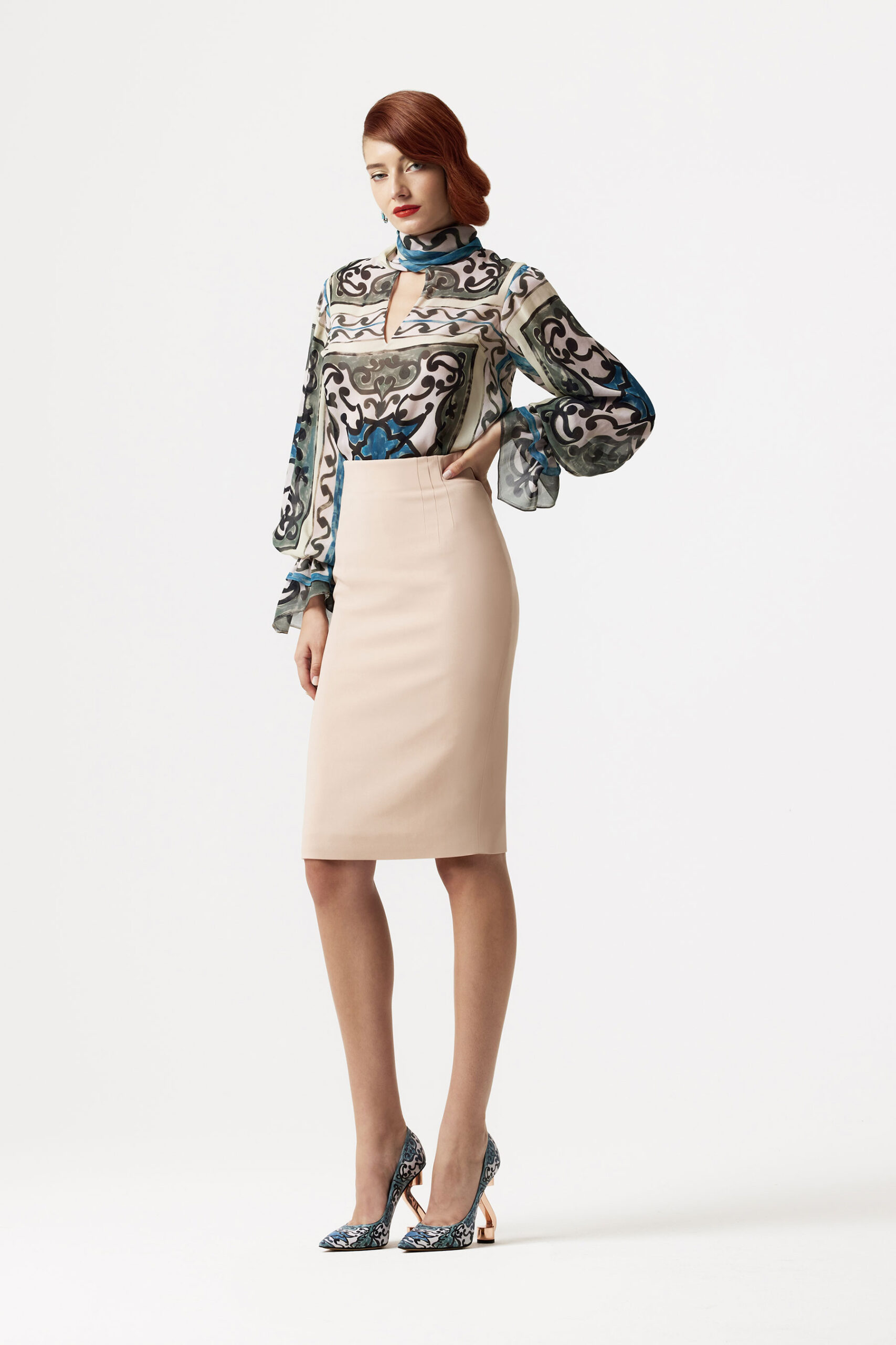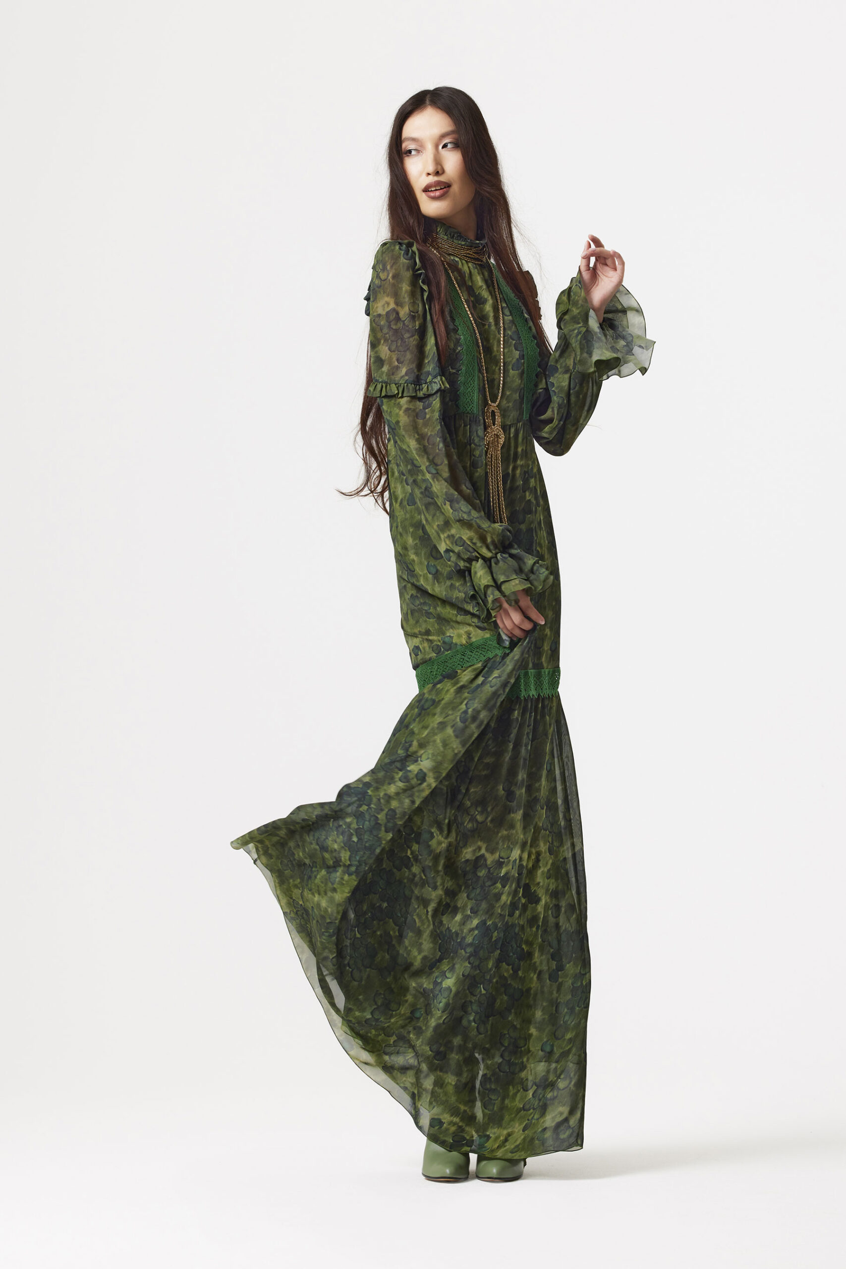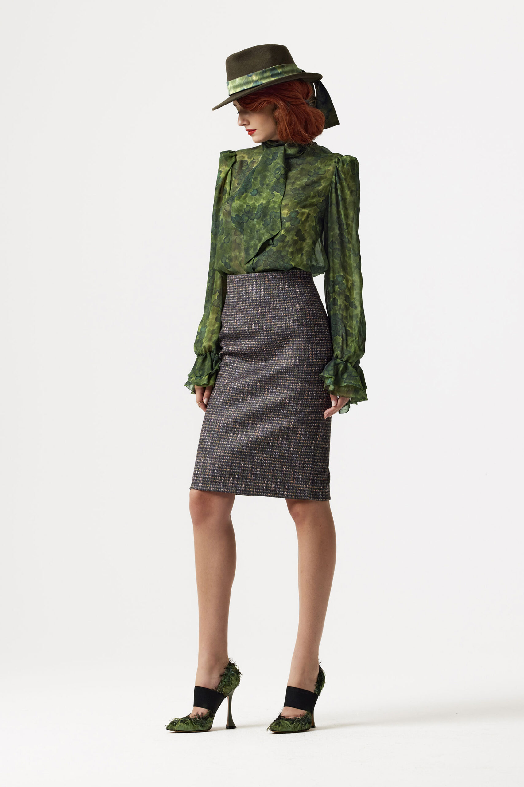 Under the direction of co-creative directors Giovanni Premoli and Dario Di Bella, the 107-piece offering signaled not nostalgia, but intention. Rather than mining the archives for retro silhouettes, the designers approached Soldano’s legacy as what Premoli described to us as “a living visual language.” Prints — some originating as oil paintings on canvas before being transferred onto silk — carried the weight of memory without feeling referential. “It was never our intention to reference the past through literal forms,” Premoli noted. “Here, memory becomes vision.”